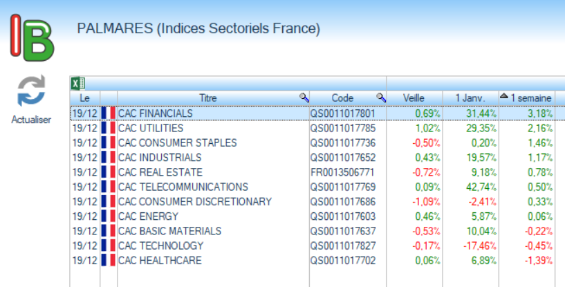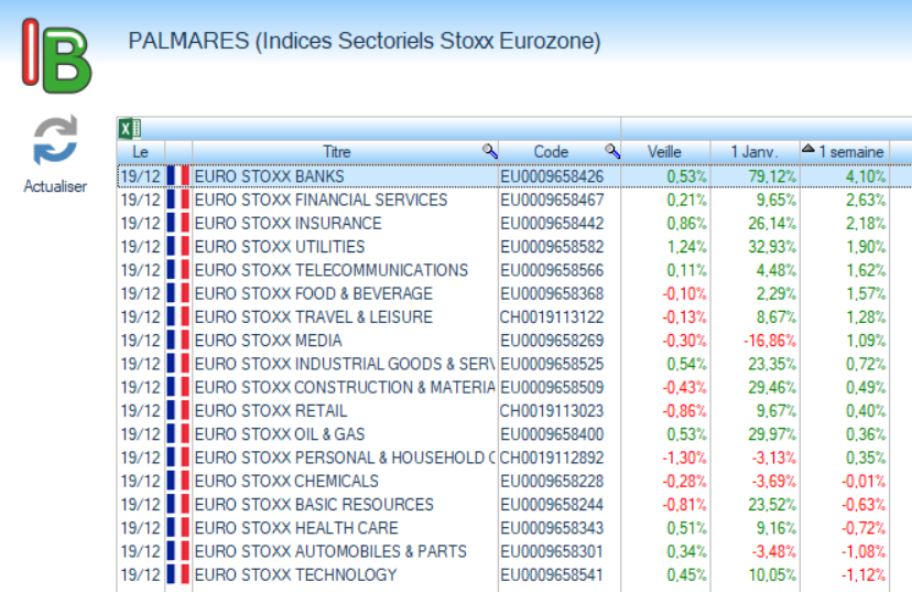 Après leur performance de la semaine dernière, les bancaires se sont de nouveau distinguées avec la Sté Générale en tête (+ 7,20 %). Du côté des assurances, Mapfré, Generali et Scor affichent des hausses de 4 à 5,5 %