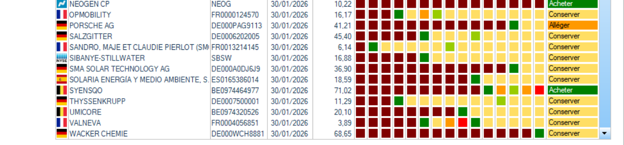 - SMA Solar Technology (+ 42 %) depuis le conseil d’achat début novembre 2025 (+ 8,27 % en janvier)