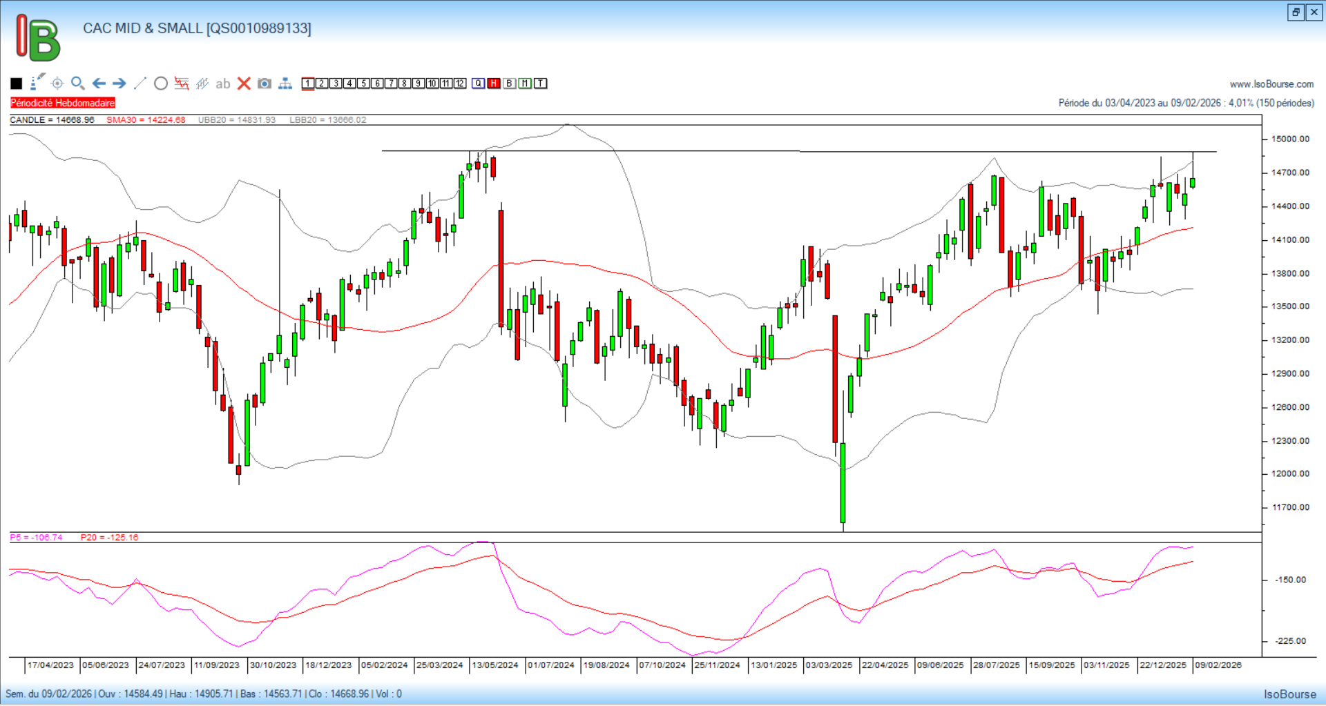 Cette résistance des 14910 points est à surveiller. Son franchissement pourrait relancer des valeurs comme ABC Arbitrage, Elis ou Valneva qui sont déjà en tendance positive de moyen terme.