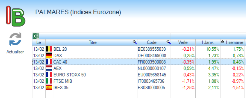 La bourse de Paris a clôturé en hausse cette semaine avec un gain relativement modeste (+ 0,46 %) malgré un nouveau sommet historique atteint lors de la séance du 12 février.