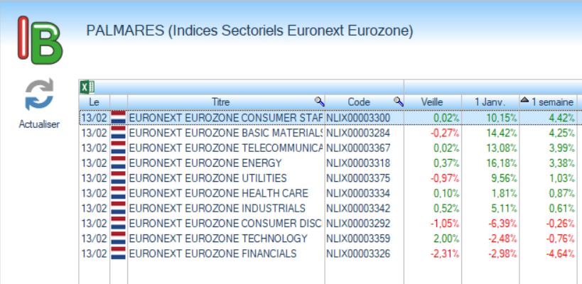 Indices sectoriels de l’Eurozone