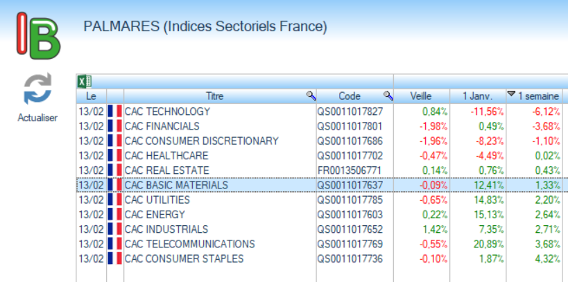 Performance du CAC 40 et Indices sectoriels France