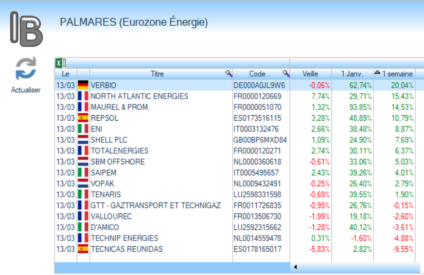 Le pétrole a connu une forte volatilité cette semaine, le WTI évoluant dans une large fourchette comprise entre 75 et 120 dollars, avant d’amorcer une phase de stabilisation autour de 97 dollars. Dans ce contexte, le secteur de l’énergie a néanmoins enregistré des performances remarquables.