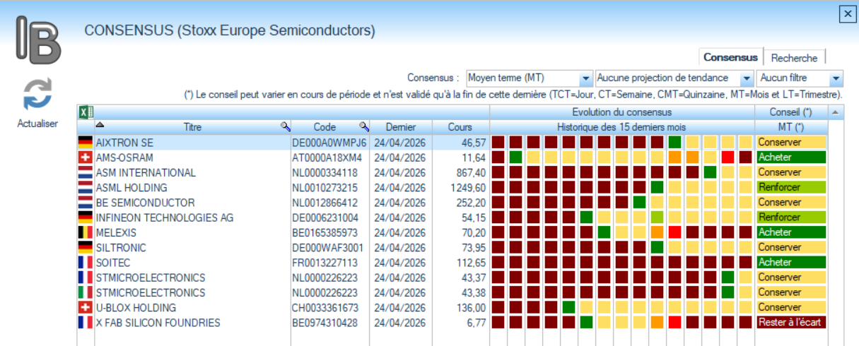 Si l’on s’attarde sur le secteur Stoxx Europe Semiconductors à partir du consensus Isobourse :